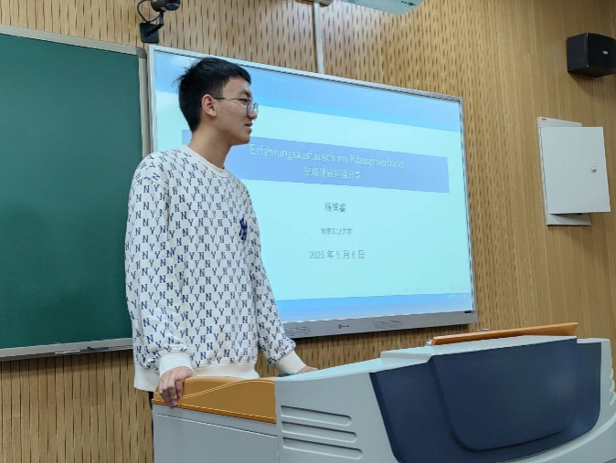 会上,杨博睿同学首先介绍了德语2101班级取得的成绩,详细讲述了班级建设经验,从分层次引导、需求调研与资源共享、高效收集数据和班级新媒体平台运营等方面对新生班级提出建议。与会人员就班级建设、学风建设与团日活动开展等展开积极交流。范楚晗老师在总结中表示,要加强学风建设,班委要率先垂范,引导员工学会自我教育、自我管理与自我服务;要有效安排班级活动,进一步增强班级凝聚力与向心力。
